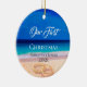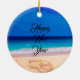 Couples First Christmas Name Date Tropical Beach Ceramic Ornament