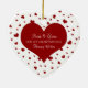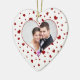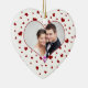 Photo couples 1st valentine's day ornament keepsake with classic red and white hearts pattern, customisable with your names and photo. The perfect memento of your first Valentine's day together as a couple.