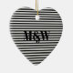 Couple's initials monogram black white stripes ceramic ornament