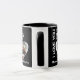 Chic black personalised Couples Photo mug, with heart-shaped CUSTOMIZABLE PHOTO and CUSTOMIZABLE NAME(S), which can be personalised with your own photo and name(s). When uploading photo, please ensure faces are near the centre of the photo. Text reads I LOVE YOU TO THE MOON AND BACK in bold serif and sans serif typography. The design is repeated on the reverse (and linked) and there is a smaller heart image in the middle. This would make a great gift for couples at Valentines, also for Birthdays, Wedding Anniversaries and Christmas, etc.