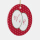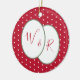 Newly married couple's monogrammed design with space for the couple's initials on the front with a classic red and white polka dots pattern. The back has the message "Mr & Mrs Johnson", "Our First Christmas", "2022" on the back. The design can be personalised with the initials, year & the message, changed simply by using the personalise this button. Further changes, such as the colours & fonts can be made by using the editing tool. If you need help with personalisation, matching products, or for a custom design, contact me via zazzle chat or email: ursuladawnmoon@gmail.com