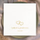 Create stylish custom wedding napkins by adding the couple's names and wedding date to these white cocktail napkins. Simple, elegant script written in a tan golden colour can be edited to any text. The golden tone is faux gold, not real foil. Two simple hand drawn golden tan toned intertwined hearts accent the centre or they can be deleted if desired. The couples names and date below in golden tan modern script is editable. This would look great on wedding reception table with the matching stemless wine glasses. Simple minimalistic yet romantic napkins for a wedding, anniversary or engagement party.