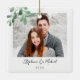 This Couples Photo Christmas Ornament is decorated with watercolor mistletoe and stylish script typography.