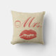 Couples' Pillow, Mrs w Red Lips on Cream Parchment Cushion