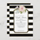 TO CHANGE BACKGROUND COLOR: The white stripe can be changed by using the background colour selection tool under customise it. Have you been looking through Pinterest trying to find wedding stationery that ISN'T a rustic wedding theme with burlap, mason jars and chalkboard? Are you a lover of elegance and longing for classic, timeless, pretty stylish feminine design? We had you in mind when we created this modern wide striped background in black and white with a fine faux gold glitter border. An Art Deco styled notched corner frame border is layered over the background in gold white and black. A simple, elegant, hand painted floral cluster with Freesias, and assorted roses and rose buds with a soft mint green grey succulent leaf for a modern touch. Vintage. Stylish. Chic. Art copyright Audrey Jeanne Roberts, all rights reserved.