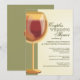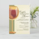 A golden wineglass of a red wine makes a perfect design for a wine-themed co-ed couples wedding shower. When the couple loves wine, or if the shower or wedding is at a winery or vineyard, this elegant design will set the stage for your wonderful event. The wine glass is given a frosted effect in rich tones of gold, green and brown and the background has an aged off-white textured look that adds dimension to the overall look. Offered here on the basic paper stock, this design would also look great on linen or felt.