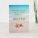 Folded shower invitation for the couple. Beach scene cards have text on the front and inside to customize for a couples shower or engagement party. A sea star / starfish and pink plumeria flower decorates the front over a tropical sea and sand image. The sample wording is for the maid of honor and best man inviting guests to celebrate the bride and groom. This could also say the parents, bridesmaids, or other, and the shower could be for the bride alone. Inside customize text in two paragraphs for the party information and reply / registry. A sandy beach is the background inside as well.