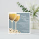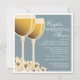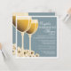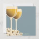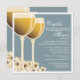 Beautifully hand-drawn wineglasses of white wine makes a perfect design for a wine-themed co-ed couples wedding shower. When the couple loves wine, or if the shower or wedding is at a winery or vineyard, this elegant design will set the stage for your wonderful event. The wine glasses glow with a crisp golden varietal and the flower blossoms are tinged with soft yellow hue, all on a background of calm steel blue. Offered here on the basic paper stock, this design would also look especially wonderful on linen or felt.