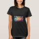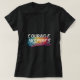 The t-shirt design features the powerful message "Courage Inspires Progress" in a bold, modern font. The text is set against a vibrant, colourful graphic that conveys a dynamic sense of movement and forward motion. The design is visually striking and inspiring, emphasizing the idea that courage is a driving force for positive change.
