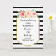 Congratulations on your wedding day card for cousin and wife with black and white stripes and watercolor pink flowers, and sentimental verse.