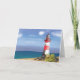 Wish your cousin happy birthday with this coastal seaside landscape card. A red and white lighthouse is prominent against the ocean and sandy beach. A rocky area with grasses, surrounds the lighthouse. Perfect for guy or girl.