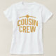 The design features bold, golden lettering with the words "Cousin Crew," topped by a stylised arrow or banner. The use of a warm colour and strong font conveys a sense of unity and camaraderie.