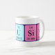 Cousin spelled out as C O U Si N (Carbon Oxygen Uranium Silicon Nitrogen) on a mug for the scientist in you.