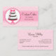 © 2012 Socialite Designs. Our couture cakes bakery business card design has an elegant cake on a stand inside a lace circle. A perfect business card for a bakery business or cake designer. Personalise this cake, lace and damask business card with your information.