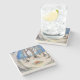 The coasters are gorgeous, a quality feel and heavy weight. They look like a precious archeological find. A rustic stone juxtaposed with a modern floral black and white print. I like the way the print goes slightly imperfect on the cut stone edges giving them a kind-of natural beauty.