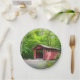 This paper plate features a covered bridge......a landmark in Chatfield Hollow State Park in Killingworth, Connecticut.