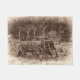 A photograph with a vintage look of an uncovered, covered wagon. The wagon was likely used in a western movie.