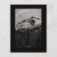 A black and white landscape photograph of a cloud filled sky trying to wrap itself around a snowy mountain. Trees cover the surrounding landscape of the taller mountain top. Image Copyright ©2023 Kimberly J Tilley. zazzle.com/store/developingnature