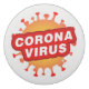 CoronaVirus Text in White Orange and Red Color Printed on Round Eraser having Corona Virus 2020 or Covid 19 Logo Design of Covid19 Bacteria Structure of Protein Cell