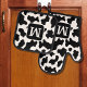 Cow Animal Print Spotted Black & White Monogram Oven Mitt & Pot Holder Set