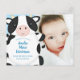 Celebrate a farm theme baby shower with this cute cartoon cow design in a stuffed animal style drawing! The blue background makes it perfect for a baby boy on the way!
