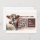 Business postcard featuring a modern, artistic cow and floral design. Great for farms and other businesses. The QR code on the front can be used for your online website. Great mix of traditional and digital to meet your needs. The front also has space for your products and services such as beef, dairy, and feedlot operations. Customise the text. Use the template to create your own cow business postcard with QR code.