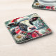 Cow Dreaming of Warmer Times Teal Red Floral Coaster