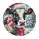 Cow Dreaming of Warmer Times Teal Red Floral Cutting Board