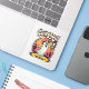 The stick looks amazing. Unfortunately, it would not stick on our suitcase as it was textured. When we found a non-textured (smooth) suitcase, the sticker stuck and looks great. The printing looked awesome.