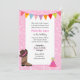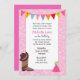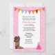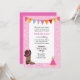 Pink Birthday Invitations for cowgirls with a pink band cowboy hat, colourful banner, party hat and a boot. Background is pink bandanna. Western theme just for girls.