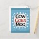 "Cow Goes Moo" is a fun text design with a white accent shape surrounded by white whimsical textured dots.