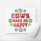 A cow lover can share their love with this very colourful design with spirals and the words - Cows make me happy. It makes a great gift.