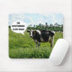 Black and white cow standing in the pasture, with a little humourous saying: "I'm outstanding in my field!"