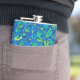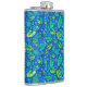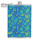 Flask featuring colourful floral pattern - yellow pond lily flowers, broad green leaves and blue dragonflies.