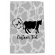 Farting cow silhouette. Seamless cow pattern background. Vector elements with fully customisable colour fills. Custom text on both sides.