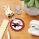 Farting cow silhouette inside a red prohibition circle. Vector elements with fully customisable colour fills. Custom text at the back side..