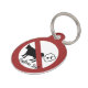 Farting cow silhouette inside red prohibited circle. Vector elements with fully customisable colour fills. Custom text on both sides.