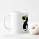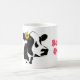 This coffee mug is shown with a art print of a Black and White Jersey cow and a text of "Moove Over!" Text shown in Red, but choose your favourite colour as always. Customise this item or buy as is.