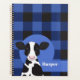 A cow planner featuring blue buffalo plaid and a cow spot pattern. Simply add your name, add this planner to your cart, and enjoy your personalised cow planner!