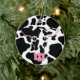 Whimsical Cow Face with Cow Print Background Christmas Ornament