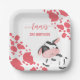 Cow party tableware pink cow pattern personalised name party plates. Cute baby cow for farm barnyard birthday.