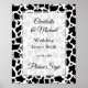 Wedding guest book sign poster. Black and white seamless cow background pattern.