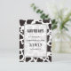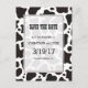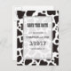 Black and white seamless cow background pattern Save the Date vetical postcard with transparency and custom text fields.
