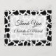 Wedding Thank You Postcard. Black and white seamless cow background pattern.