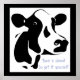 Poster shown with a Black and White Jersey Cow print, Black borders and a sass comment. Perfect for kitchen or country humour. Choose text colour of choice, but shown in Periwinkle rope font. Customise this item or buy as is. Stock Image