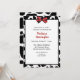 Cow Print Invitation with a red and black bow. Great for Farm themed parties. Customise with your party details.