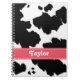 If you love black and white cow prints and cow spots, you'll love this cute and trendy custom black and white cowhide spiral notebook cover with a pink ribbon design that can be personalised with your name. This girly and stylish spiral bound notebook can be used as a journal or diary too, and it is equally great for home office supplies or back to school use. This makes a great western or rodeo gift for her. Artwork © Chrissy H. Studios, LLC. All Rights Reserved.