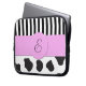 Cow Print, Stripes, Black and White, Monogram Laptop Sleeve