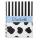 Cow Print, Stripes, Black and White, Your Name Notebook