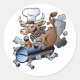 A funny design of a cow riding on top of a BBQ. This design is done in a cartoon style with a definite does of humour. The cow is sitting on top of the BBQ and has taken flight. This cow riding a BBQ design looks great on these stickers. Perfect for yourself or as a gift